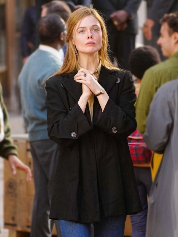 A COMPLETE UNKNOWN ELLE FANNING BLACK COAT