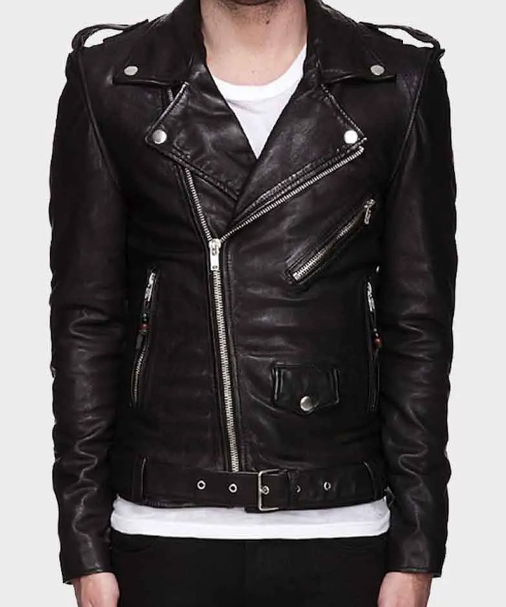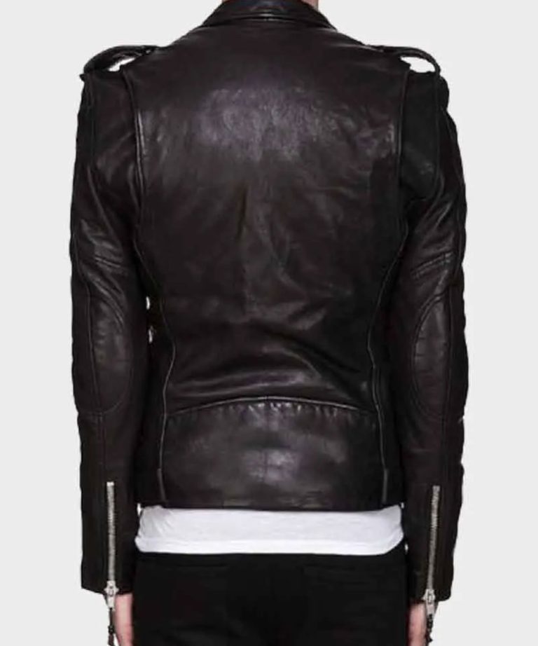 Austin Butler is no stranger to iconic fashion, and his role in The Bikeriders is no exception. This black leather jacket features a sleek asymmetric design, a classic lapel collar, and a zippered front closure that enhances its vintage appeal. The use of premium leather ensures a polished finish, while the soft viscose lining provides all-day comfort. The jacket also includes multiple pockets, combining functionality with effortless style.
