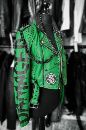 AEW Saraya Damaged Studded Green Leather Jacket