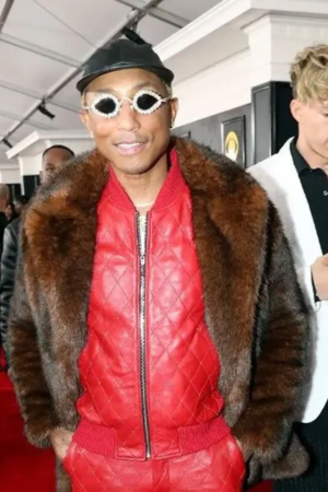 Grammy Awards 2023 Pharrell Williams Brown Faux Fur Coat