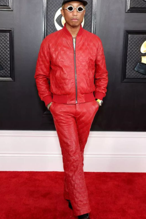 Grammys Pharrell Williams Red Varsity Leather Jacket 2023