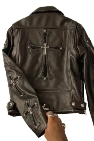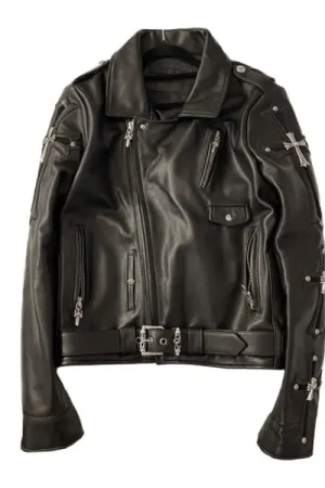 Chrome Hearts Asymmetrical Zipper Biker Leather Jacket