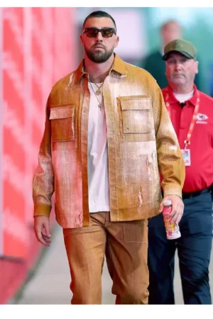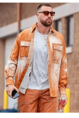 Travis Kelce Commanders v Chiefs 2025 Orange Denim Jacket