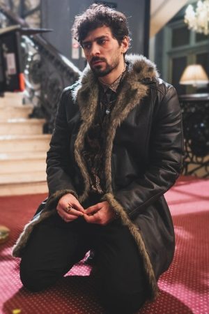 April X Ronny Black Leather Shearling Coat