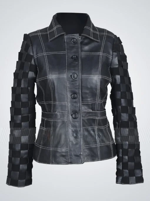 Cruella Emma Stone Estella Black Checkered Leather Jacket – USA JACKET Store