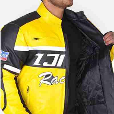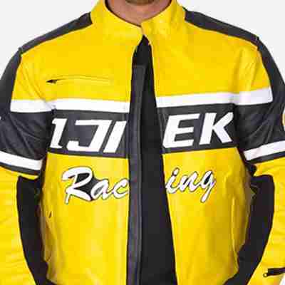 Made of quality real or faux leather, it is durable and comfy with a soft viscose lining. Stand-up collar, zipper cuffs, and YKK front zipper make it sporty and practical. The black and yellow color combination isn’t only attractive—it is recognizable for any gamer at first glance. With multiple pockets, there is enough space for your everyday stuff.