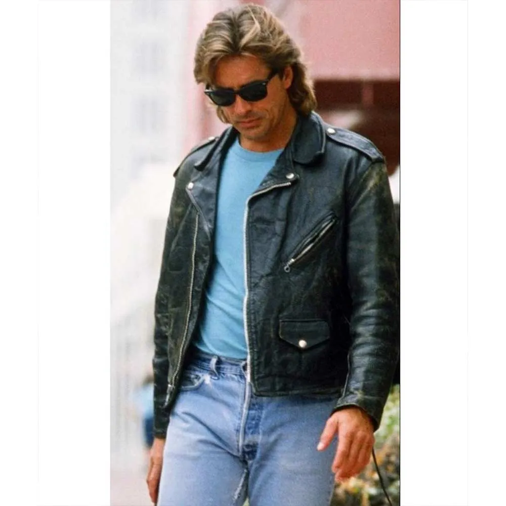 James Crockett Miami Vice Black Leather Jacket