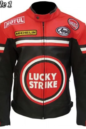 Lucky Strike Leather Racing Biker Jacket