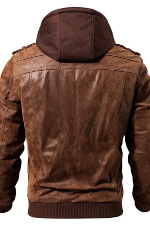 Men’s Brown Leather Moto Jacket with Removable Hooded