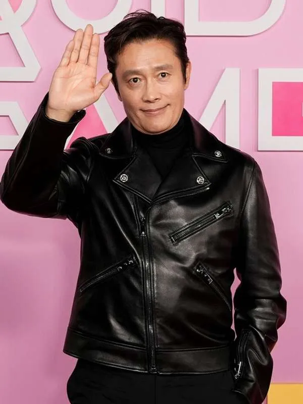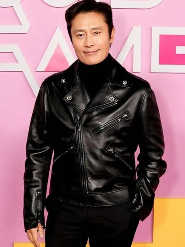 Squid Game S02 L.A Premiere Lee Byung-hun Black Biker Leather Jacket