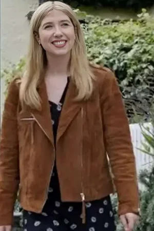 Ali Hardiman Christmas at Castle Hart Brown Leather Jacket