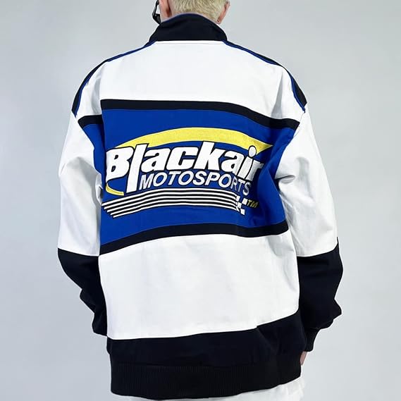 Retro Racing Jacket Letterman Baseball Bomber Varsity Jacket – Y2K Baggy Motor Biker Racer Techwear