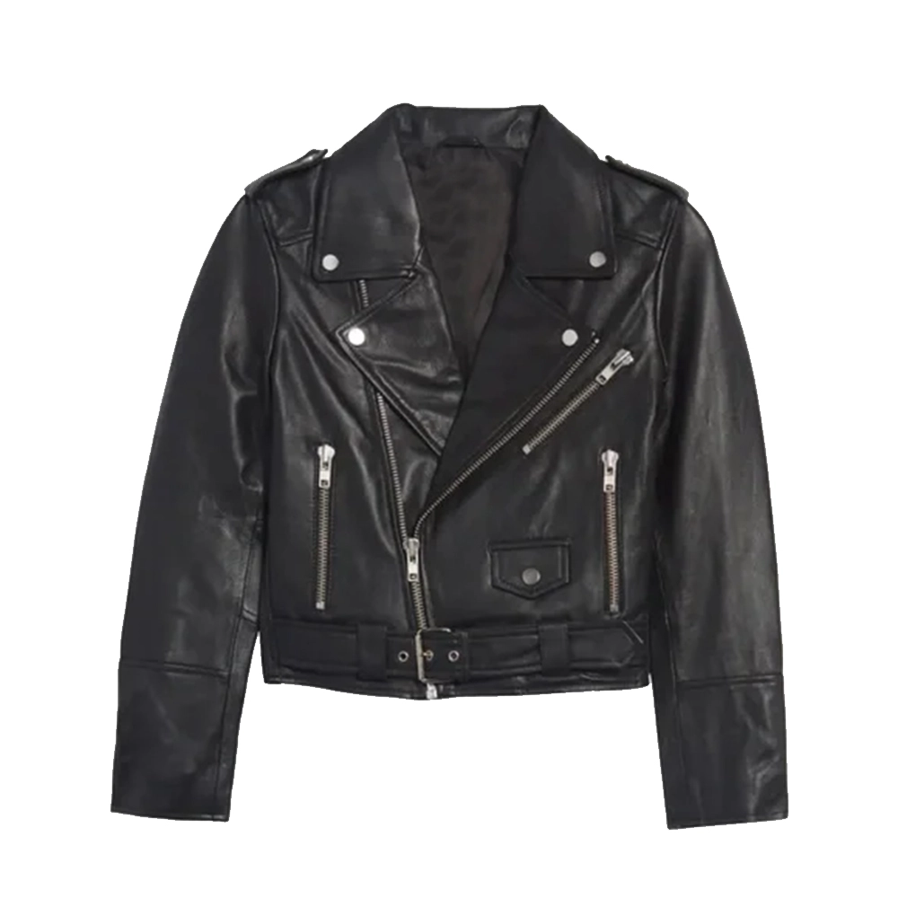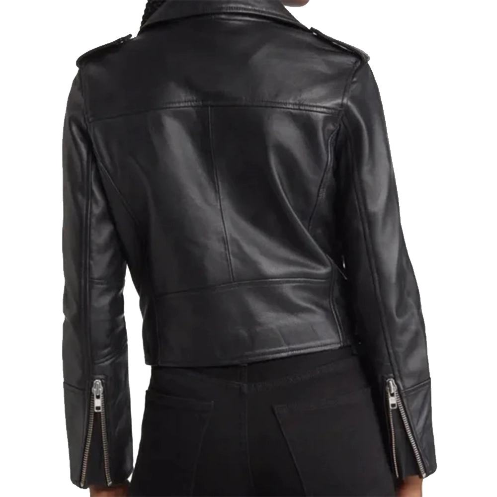Pair it with jeans and boots for a biker-inspired look, or layer it over a dress for a surprising contrast. The Misty Quigley Biker Jacket is a must-have for those who appreciate iconic style with a modern twist, only at USA Jacket Store.