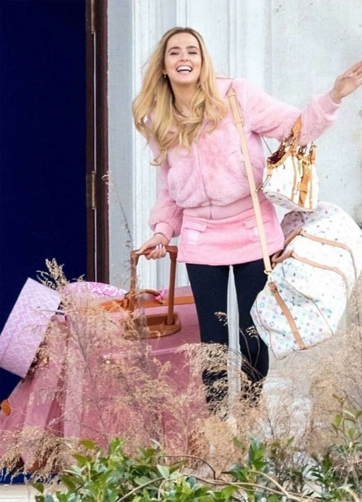 Zoey Deutch Zombieland Pink Hoody Wool Jacket